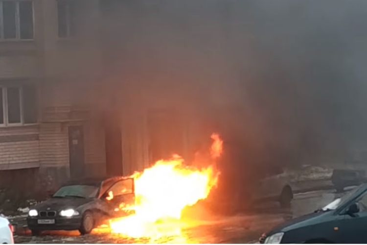 sebuah BMW X1 tiba-tiba terbakar saat sedang terparkir, yang bikin khawatir di dalamnya ternyata sedang ada pengemudinya yang tertidur.