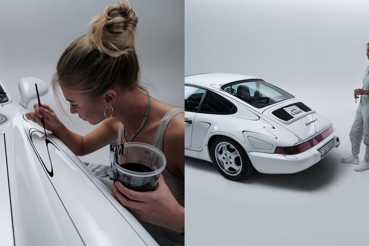 Seniman asal Jerman, Hanna Schoenwald gak pakai kanvas buat media tuangkan idenya. Tapi ia pilih Porsche 964 jadi media lukisnya.
