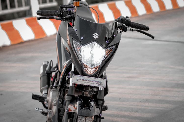 Suzuki Satria F150 ini tampil makin sporty dan keren setelah mendapatkan modifikasi yang cukup impresif.
