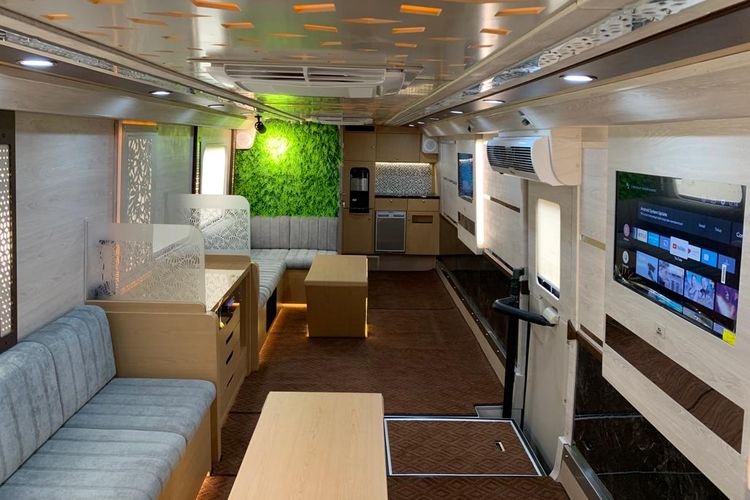 Kabin big bus Mercedes-Benz OH 1626 disulap menjadi kantor sungguhan yang tujuannya menjadi ruang negosiasi dan dealing