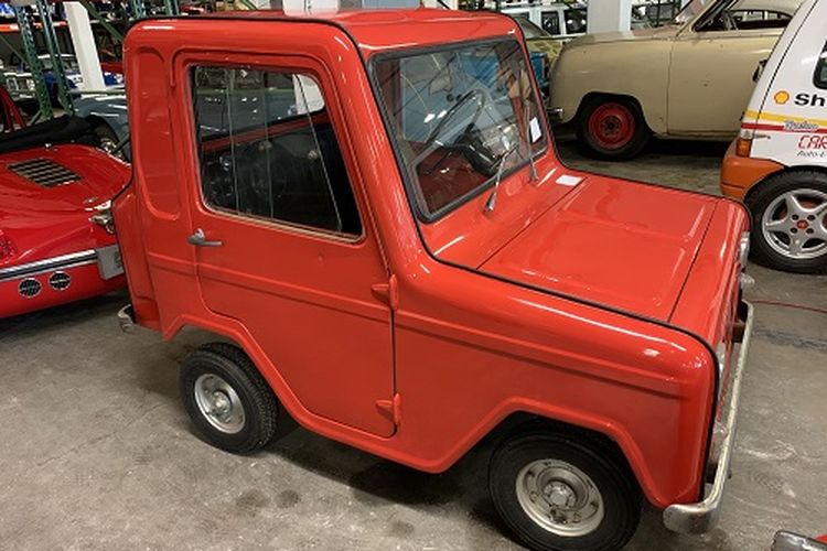 Bodi mobil mini yang satu ini kayak kepotong. Padahal aslinya ya diproduksi dengan desain seperti itu. Menariknya, mesinnya pakai punya Lambretta.