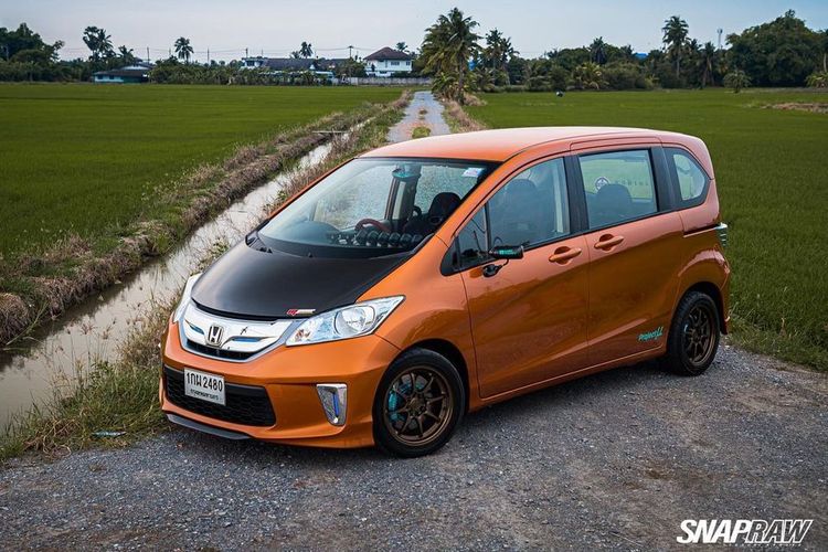 Modifikasi Honda Freed asal Thailand ini juga mengemas kabin sporty, pasang 4 jok semi bucket Recaro Rainbow Limited Edition.