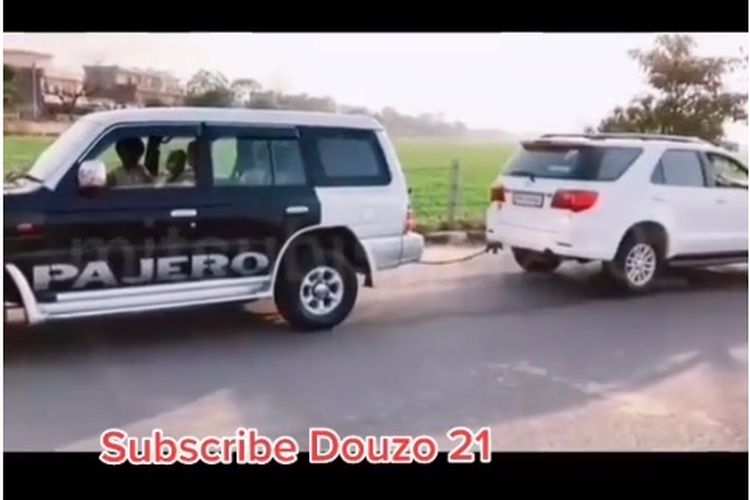 Video viral adu kekuatan antara Mitsubishi Pajero dengan Toyota Fortuner. Kira-kira siapa yang akan menang?