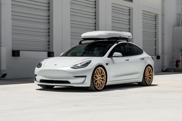 Tesla Model 3 Dandan Sporty Touring, Pelek Emas, Atap Pasang Roof Box
