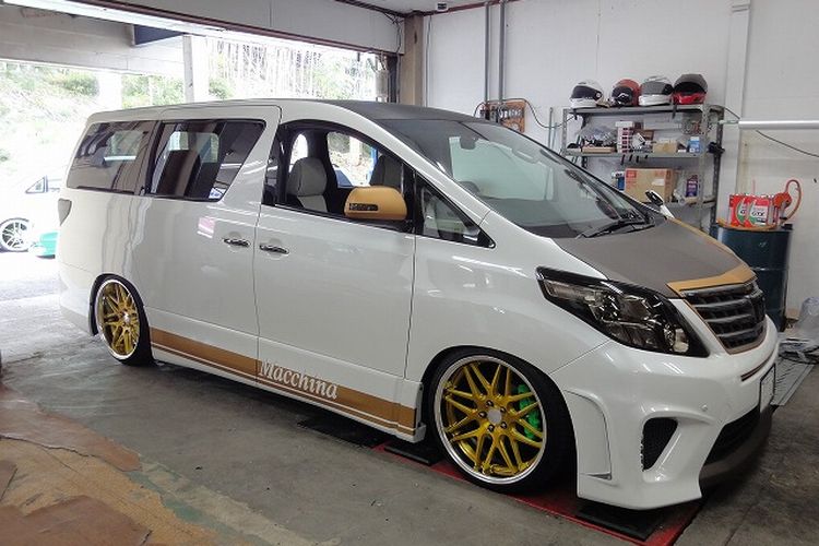 Modifikasi Toyota Alphard garapan Macchina, Jepang tapi eye catching andalkan body kit simpel dan permainan warna yang mencolok.
