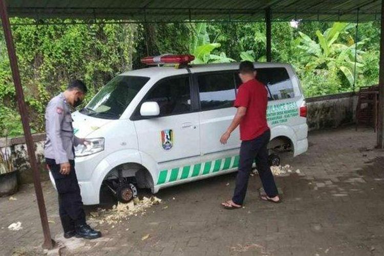 Terparkir di Balai Desa, Keempat Ban Suzuki APV Ambulans Raib Digondol Maling
