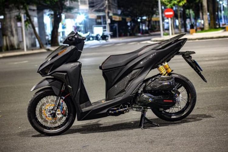 Modifikasi Honda Vario 150 Gahar Berjubah Karbon, Kakinya Full Upgrade