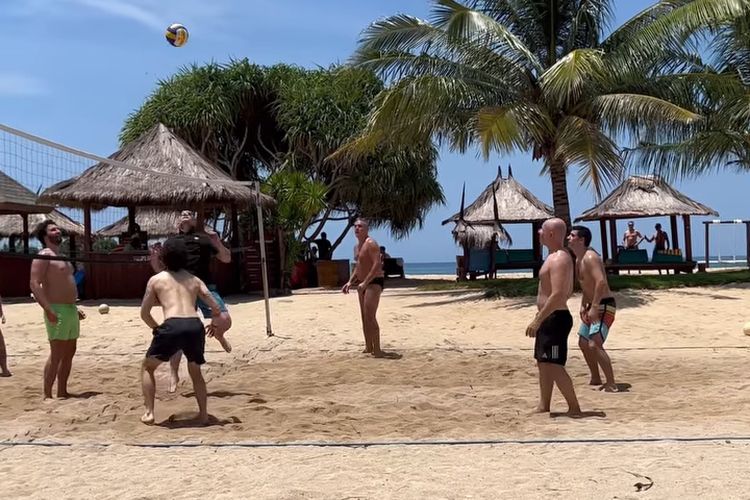 Pecco Bagnaia dan Enea Bastianini menikmati karantina di Lombok dengan bermain voli pantai bersama kru Ducati.