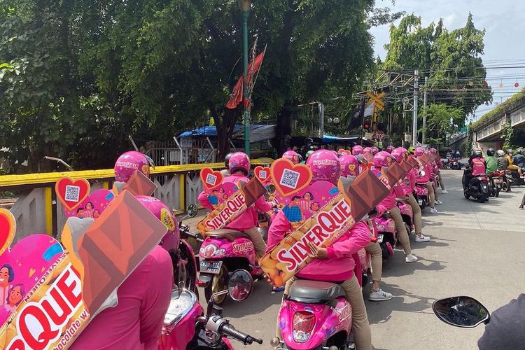 Sambut perayaan Valentine atau hari kasih sayang, puluhan bikers Honda Scoopy dengan atribut SilverQueen bagi-bagi cokelat di Jakarta.