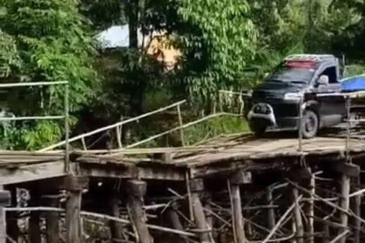 Nyali sopir Daihatsu Gran Max bukan kaleng-kaleng si. Ada jembatan reyot tetep trabas lewat aja. Endingnya bikin warganet khawatir.