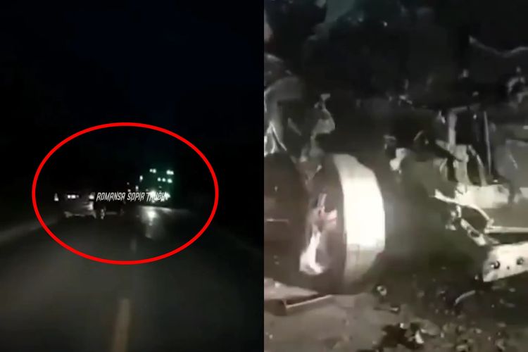 Toyota Kijang Innova satu ini tertangkap kamera oleng sampai seruduk truk dari lawan arah. Endingnya ringsek parah.