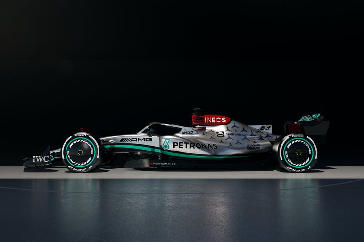 Mercedes kembali memakai livery silver lagi pada mobil baru W13 yang dipakai di F1 2022, begini tampilannya.