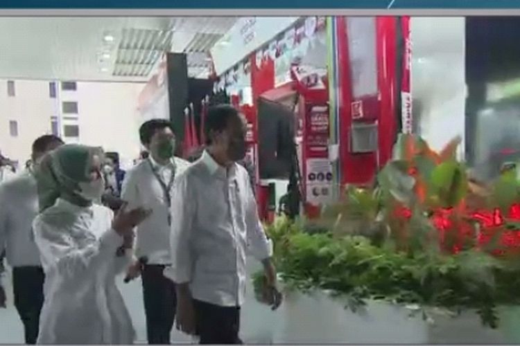 Presiden Joko Widodo menghadiri peluncuran uji coba ekosistem kendaraan listrik yang dipusatkan di SPBU Pertamina, .