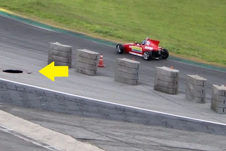 Lubang cukup besar nampak di tikungan 6 Sirkuit Interlagos yang menggelar F1 Brasil, begini penampakannya.