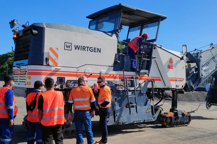 Proses pengelupasan aspal Sirkuit Mandalika MotoGP Indonesia sudah dimulai, tapi terlebih dahulu ada setting alat Cold Milling Machine.