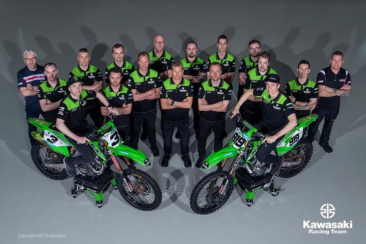 Kimi Raikkonen tampil pada sesi foto tim Kawasaki Racing MXGP 2022, sekarang The Iceman sudah jadi Tim Prinsipal.
