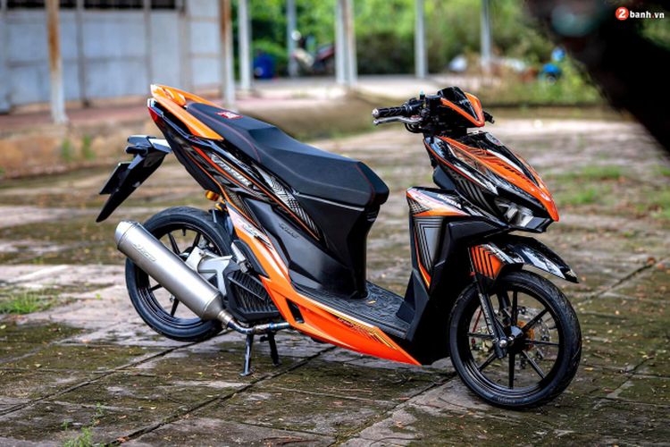 Modifikasi Honda Vario 150 Berjubah Oranye Hitam Pamer Kaki Maksimal