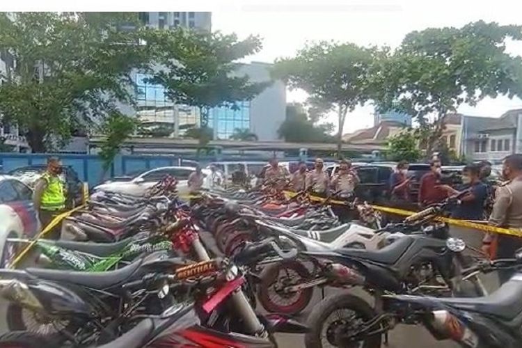 Daripada ditangkap petugas kepolisian, sebanyak 21 motor berjenis Supermoto akhirnya menyerahkan diri kepada polisi, Minggu (6/3).