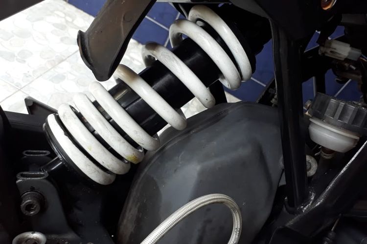 Modifikasi sokbreker KTM series, cuma pasang ini sokbreker jadi bisa disetel. Sokbreker belakang bawaan KTM series umumnya hanya bisa setting