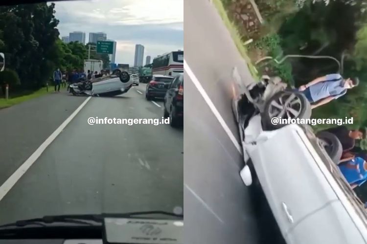Toyota Yaris ditemukan lagi telentang di pinggir jalan tol Jakarta-Tangerang pada Selasa (08/03/2022). Netizen sampai ikut doakan para korban.