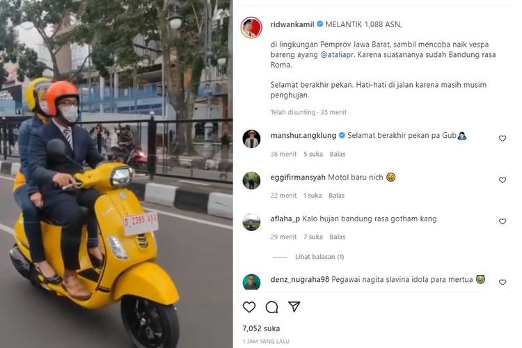 Gubernur Jawa Barat, Ridwan Kamil tampil mesra bak anak muda berboncengan dengan istri naik Vespa S 125