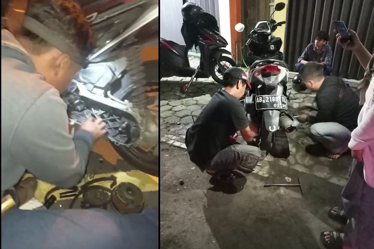Berbekal ilmu hasil belajar autodidak, para relawan ACJJ bisa bantu kendaraan yang trouble saat malam hari. Alat-alatnya juga beli sendiri tuh.