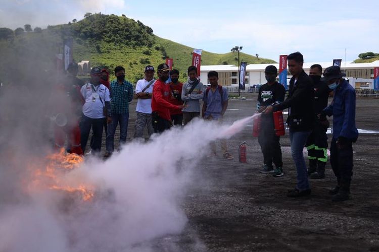 Marshal MotoGP Mandalika diberikan pelatihan memadamkan api secara baik dan benar. Pembalap bisa tenang kalau motornya terbakar.