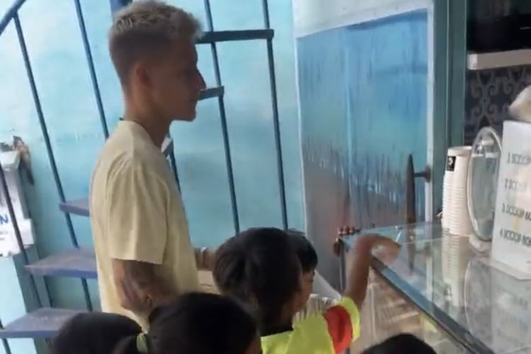 Fabio Quartararo traktir es krim anak-anak di Mandalika usai meraih podium di balapan MotoGP Indonesia 2022 di Sirkuit Mandalika.