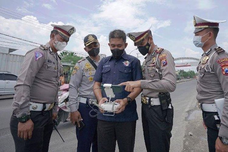 Jelang Ramadan 1443, Satlantas Polres Lamongan Survei Lapangan Gunakan Drone