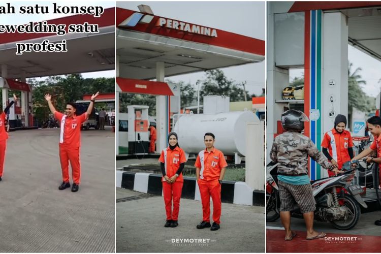SPBU gak melulu buat isi BBM kendaraan saja. Pasangan kekasih ini malah foto prewedding di SPBU sob. Sampai dikomen Erick Thohir sama Ahok lo.