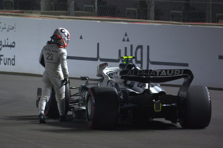 Pembalap tim AlphaTauri Yuki Tsunoda mundur dari balapan F1 Arab Saudi 2022 karena masalah mobilnya saat perjalanan menuju grid.