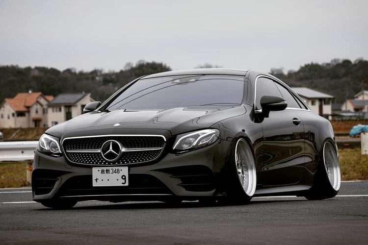 Modifikasi Mercedes-Benz E-Class milik Hiro asal Jepang ini berani main kandas dengan komposisi suspensi statis. Simak ulasannya