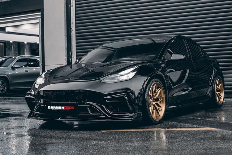 Modifikasi Tesla Model 3 hasil garapan DarwinPro, Jerman, ini sukses tampil sangar mengekspos aura racing yang kental