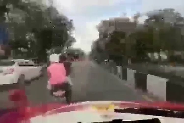 Pemotor Honda Vario ini jangan ditiru deh sob. Nekat coba potong jalan mobil damkar yang lagi mengebut di jalan.