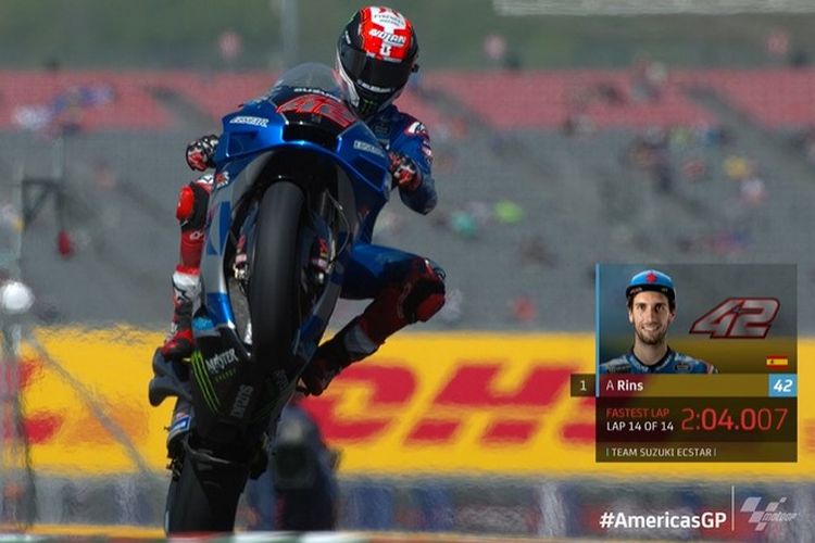 Pembalap Suzuki Ecstar, Alex Rins berhasil jadi yang tercepat pada akhir sesi FP1 MotoGP Amerika 2022, Jumat (08/04).