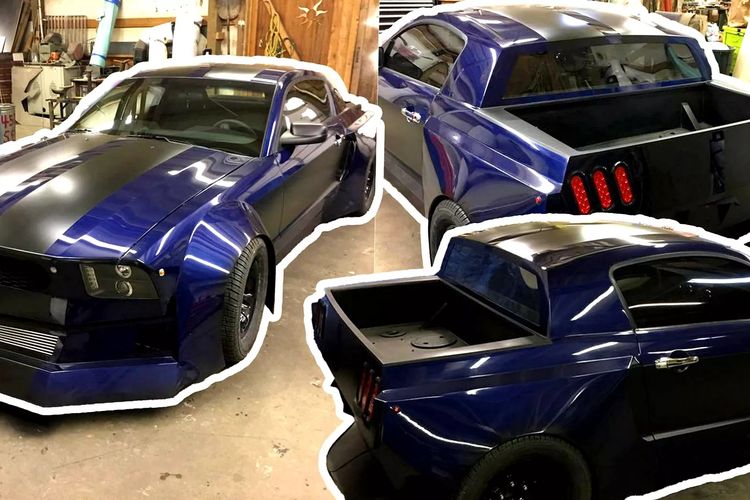 Modifikasi Ford Mustang kena praktik ekstrem potong bodi menjadi pikap dan punya proporsi wajah unik. Simak ulasannya