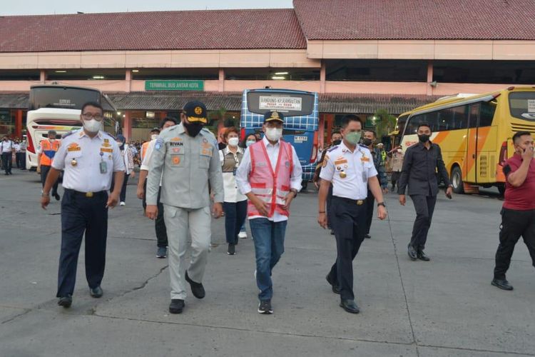Menteri Perhubungan Budi Karya Sumadi melakukan inspeksi ke Terminal Tipe A Kampung Rambutan, Jakarta Timur..