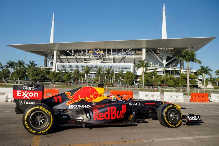 Sergio Perez berkesempatan mencoba sirkuit jalan raya kota Miami yang menjadi tempat digelarnya F1 Miami 2022.
