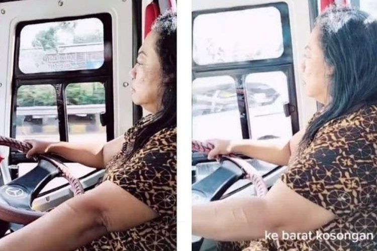 Bu Yayuk, sapaan seorang sopir bus PO Haryanto yang tampil percaya diri pacu armadanya meski hanya kenakan daster saja.