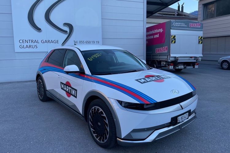 Modifikasi Hyundai IONIQ 5 asal Swiss coba dandan rally look pakai livery Martini Racing ala mobil balap WRC, Lancia Delta