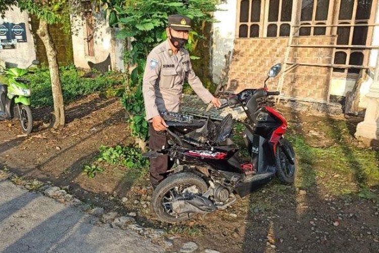 Emak-emak pemotor Hodan BeAT ini kayaknya pakai hoki seumur hidupnya. Disambar kereta api jurusan Bandung-Malang, tapi tetap selamat.