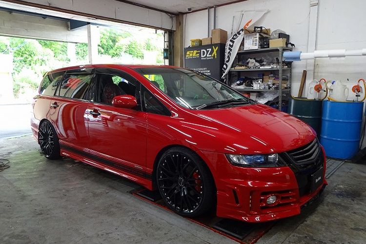 Modifikasi Honda Odyssey RB1 garapan Macchina asal Jepang ini sukses tampil eye-catching berkat warna merah dan pasokan body kit Noblesse.