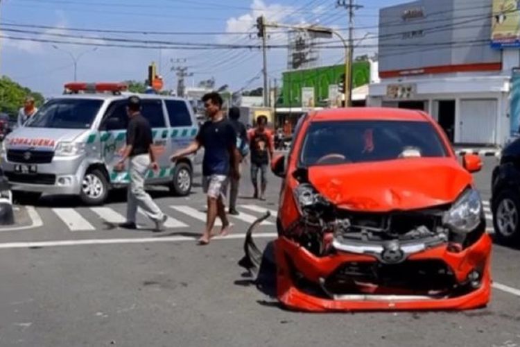 Jumat (13/5) pukul 12.30 WIB Toyota Agya merah dengan nopol AE1389JB menabrak sebuah mobil ambulans dengan nopol AE1284PD
