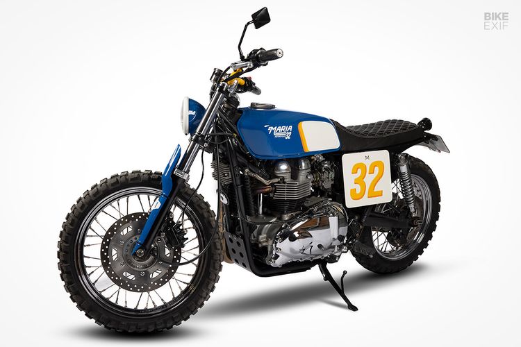 Luis Correia dari Maria Motorcycles merombak Triumph Bonneville T100 menjadi scrambler yang tampil sangar.