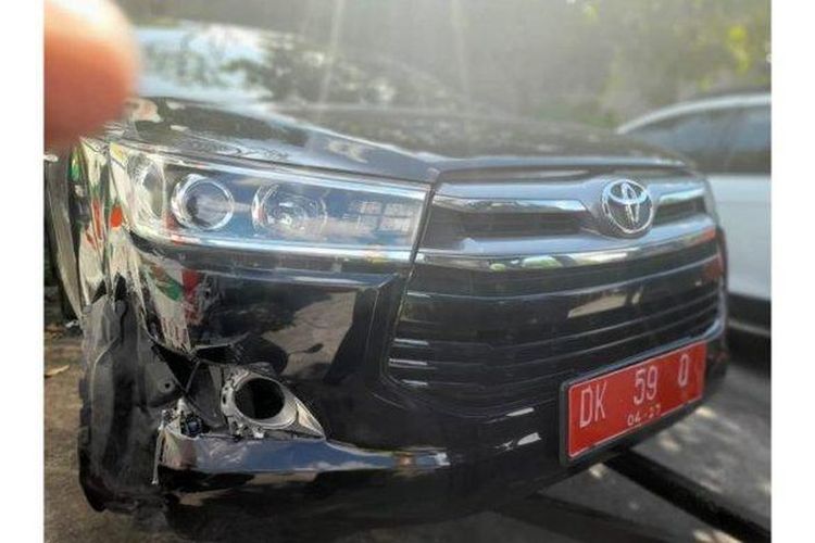 WNA mabuk naik motor bikin perkara di jalan. Hantam Toyota Kijang Innova Wakil Bupati Badung sampai penyok parah. Ending-nya begini.