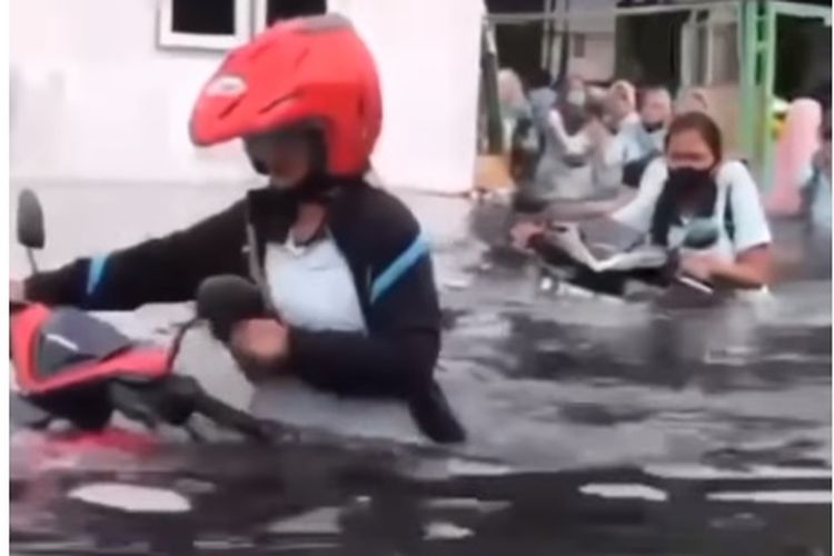 Video Banjir Akibat Tanggul Pelabuhan Tanjung Mas Jebol, Motor Cuma Keliatan Batoknya Doang