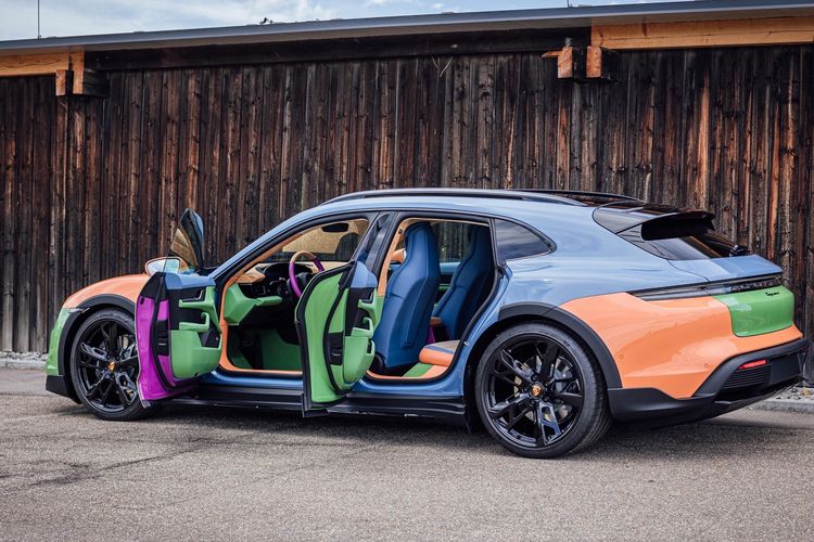 Porsche Taycan Sean Wotherspoon resmi dirilis Porsche dengan ciri khas kontras warna yang nyentrik. Sang desainer memang tahu persis