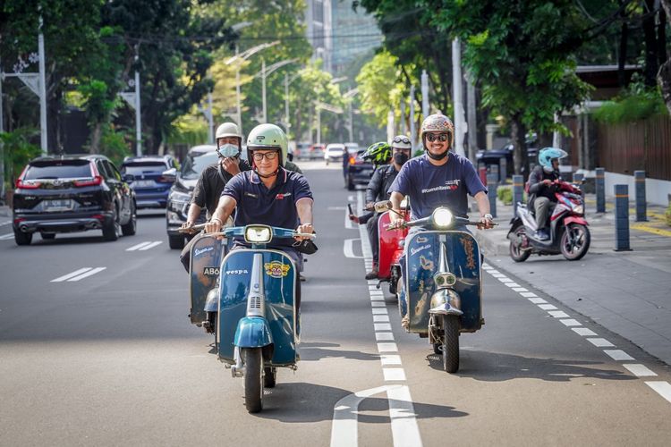 Sandiaga Uno Jajal Skuter Konversi Listrik Buatan Anak Negeri Menuju Vespa World Days 2022