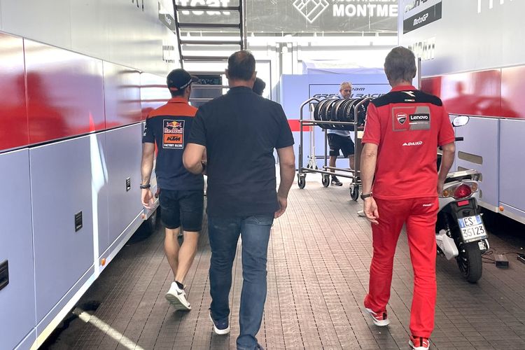Miguel Oliveira kedapatan mengunjungi garasi tim Gresini bersama sang ayah dan juga bos Ducati, Paolo Ciabatti.
