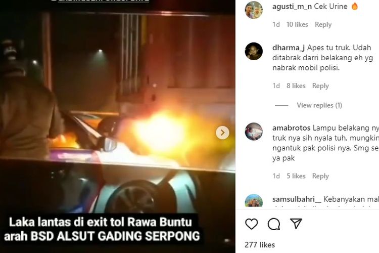 Truk kontainer lagi enak melaju lambat di dekat exit tol Rawa Buntu. Eh tiba-tiba malah pantatnya diseruduk mobil polantas.
